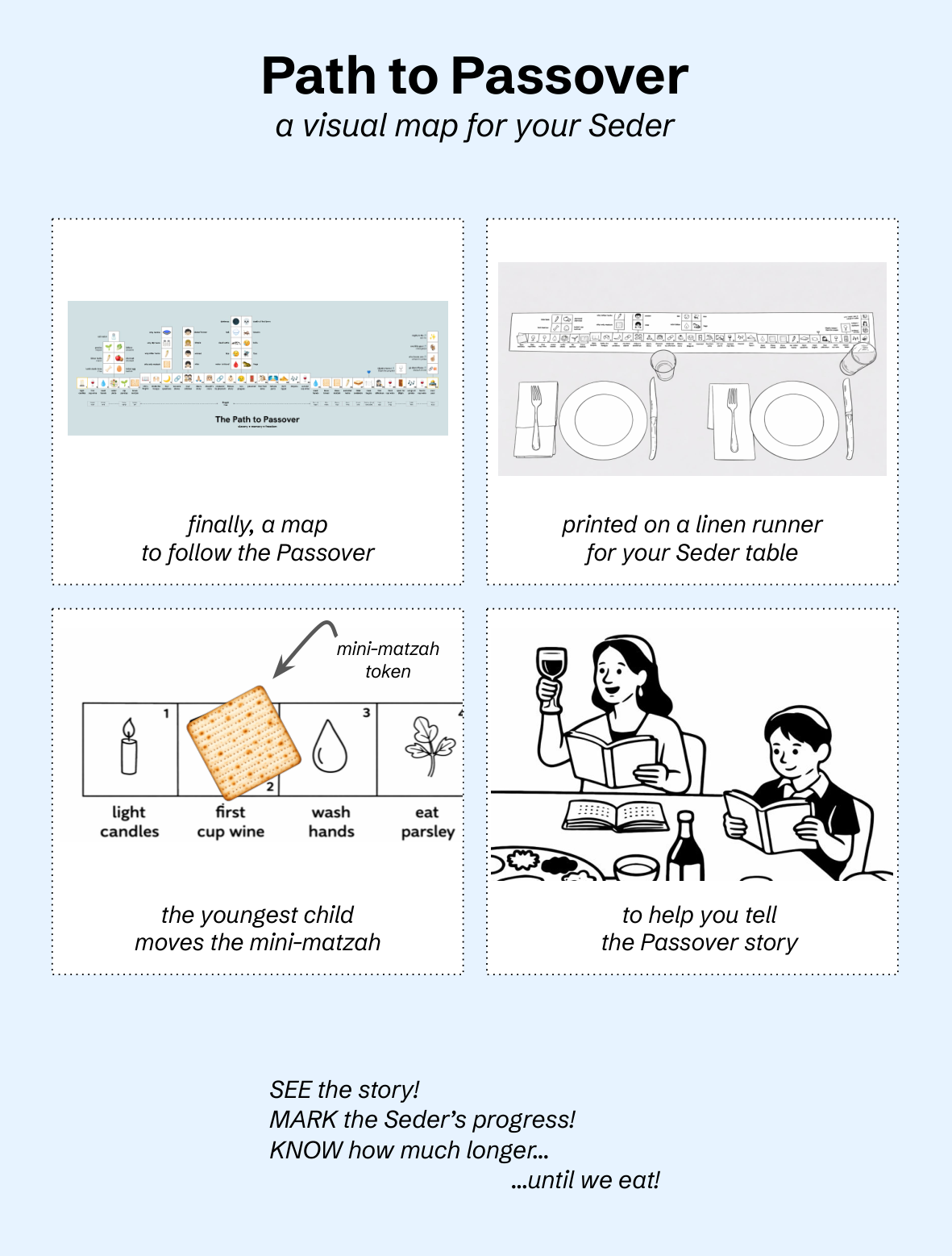 Yes! If you're doing a shorter Seder or skipping steps, the Path to Passover can help everyone keep a sense of the whole story and how it fits together.